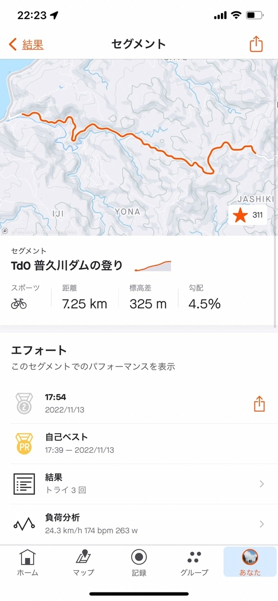 しかし登り口でいきなり人生初の足攣りの気配を感じる。それでも限界で踏んでいくけど、全然パワーが出ていないのか周りからどんどん抜かれていく。このとき薬師寺さんがかなりの速度差で自分を抜いていき、底力を感じた。