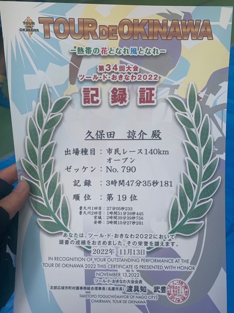 ツール・ド・おきなわ2022 市民140kmオープン 19位