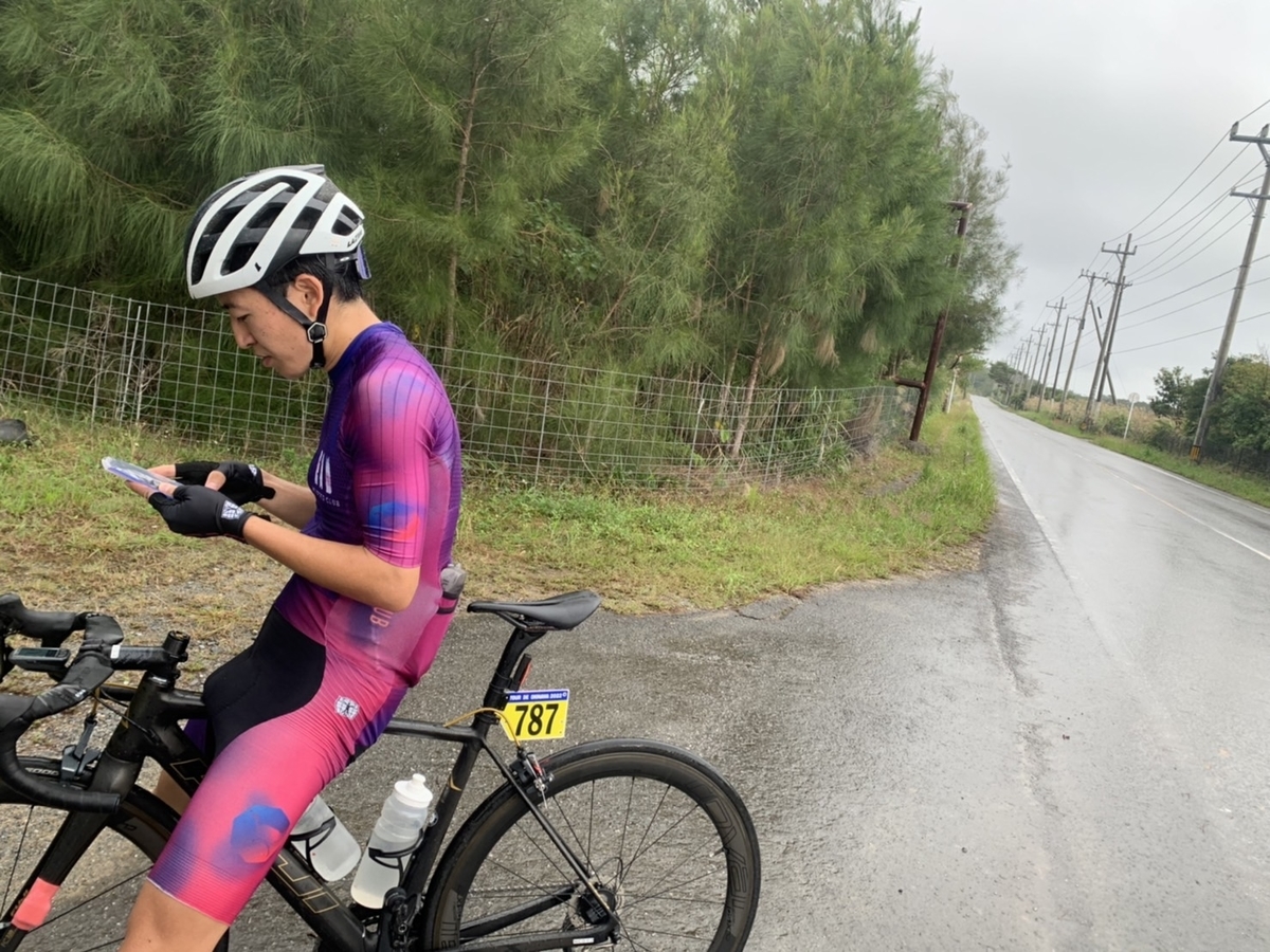 しかし、奥の上りの手前辺り?で左前の選手が道路中央にあるコーンにツッコみ落車する。紙一重で避けられたけど集団のリスクを思い出し、それ以降は怖すぎて必ず前目にいるよう意識した。